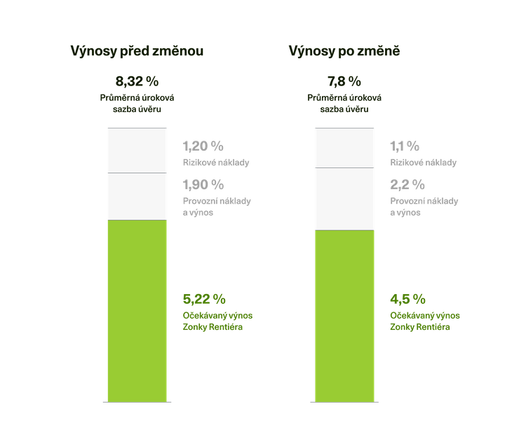 I přesto ale očekáváme výnos 4,5 % ročně, což znamená, že Zonky Rentiér zůstane velmi atraktivní možností investování a dál by vám měl stabilně vydělávat.