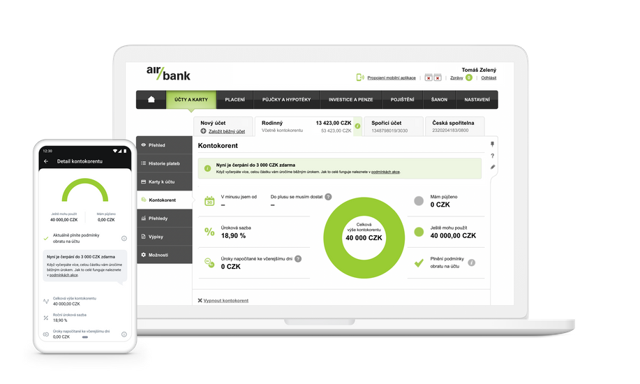 Když máte banku, která dělá věci jednoduše, můžete si zdarma na pár ťuknutí zapnout kontokorent. Pokud ho zrovna potřebujete, náš kontokorent se postará, aby vám pravidelné platby odešly, jak mají. Když ho nečerpáte, nic za něj neplatíte.